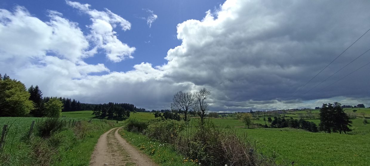 On arrive sur les hauteurs de Saugues vers 16h30, la pluie a repris depuis quelques temps par intermittence, et la journée à été très fraîche et venteuse 🍃🥶, on a pas quitté nos polaires et vestes .. mais j’ai quand même réussi à prendre un coup de soleil sur le visage 😅.