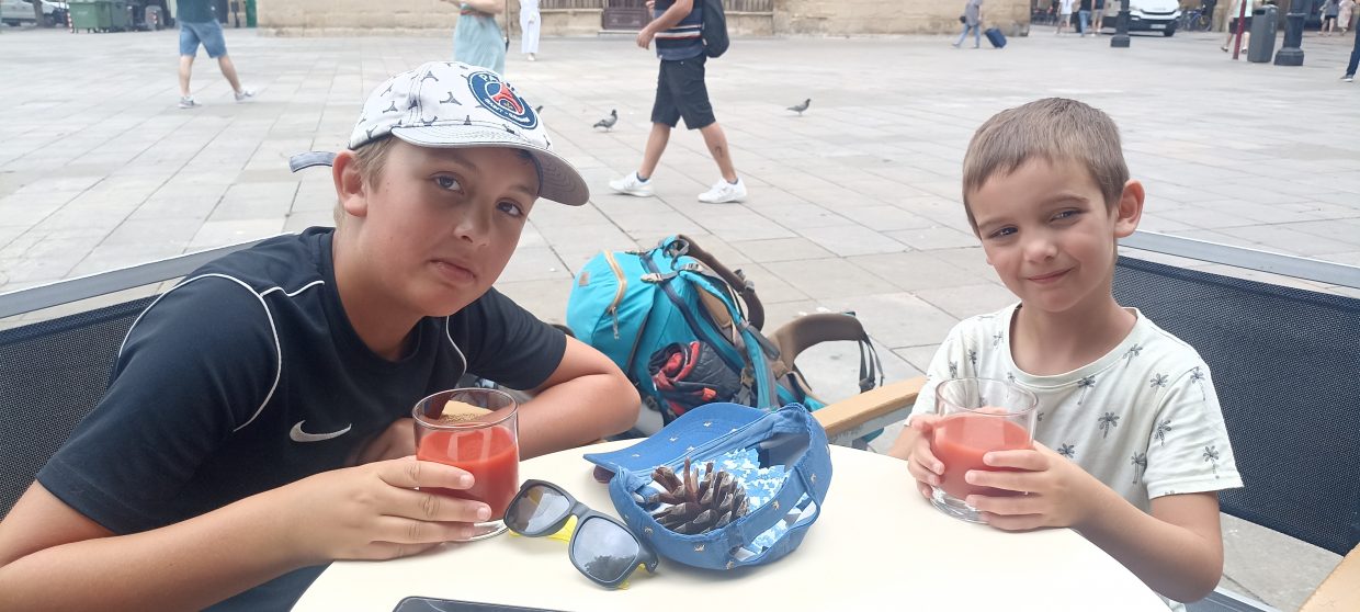 On repart se promener, on va boire un jus de tomate (c’est la première fois qu’on en trouve en Espagne cette année 😳), on va faire quelques courses. Puis on va manger, et c’est l’heure de retourner à l’auberge.